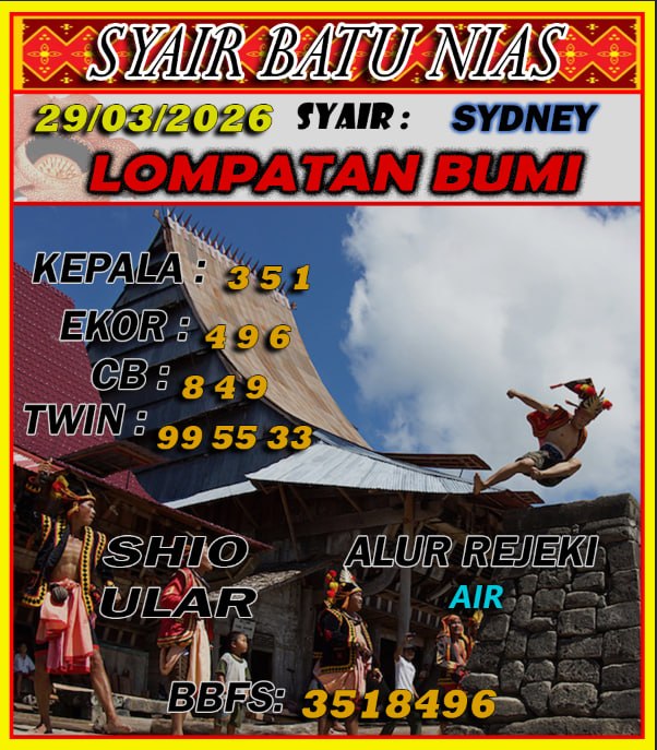 Jadi saat sebelum anda taruhan togel Sydney tentunya anda harus menyaksikan bagaimanakah cara cari nomor keluaran togel sdy di sini. Nah karena itu Prediksi NiasToto datangkan syair togel Sydney yang bisa menolong anda untuk cari nomor elok dan sanggup memberi anda kemenangan tinggi. Maka dari itu syair togel sdy ini penting sekali untuk dipakai buat cari nomor keluaran tepat. Prediksi NiasToto ini akan memberi kamu live draw sdy yang dapat anda saksikan sehari-harinya.